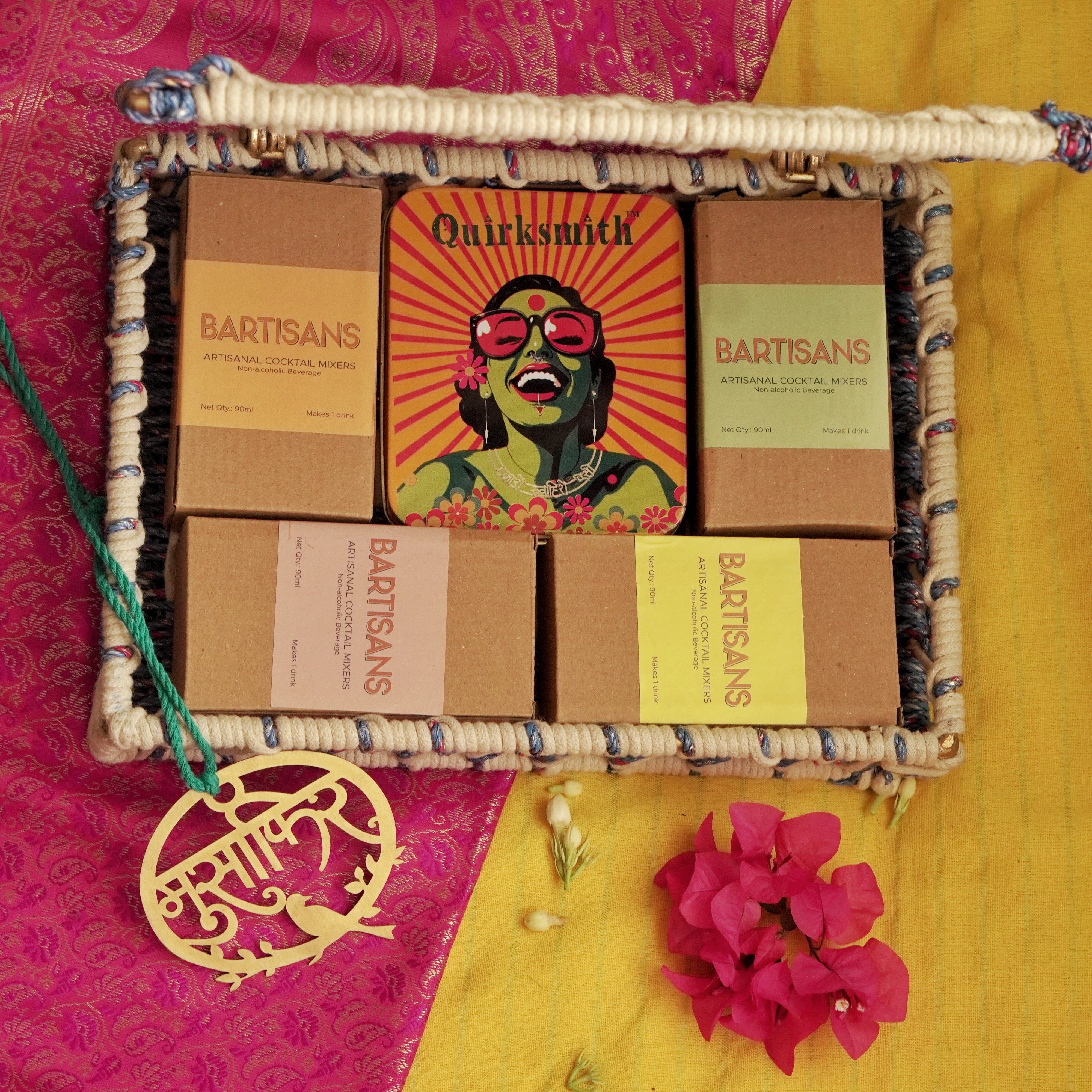 For the one you welcome not just with rituals, but with heart. Includes our Musaafir Car Hanging to bless the journey ahead, celebratory mixers from Bartisans, and a handcrafted gift box — made with upcycled plastic and cotton ropes. Equal parts elegance and intention.