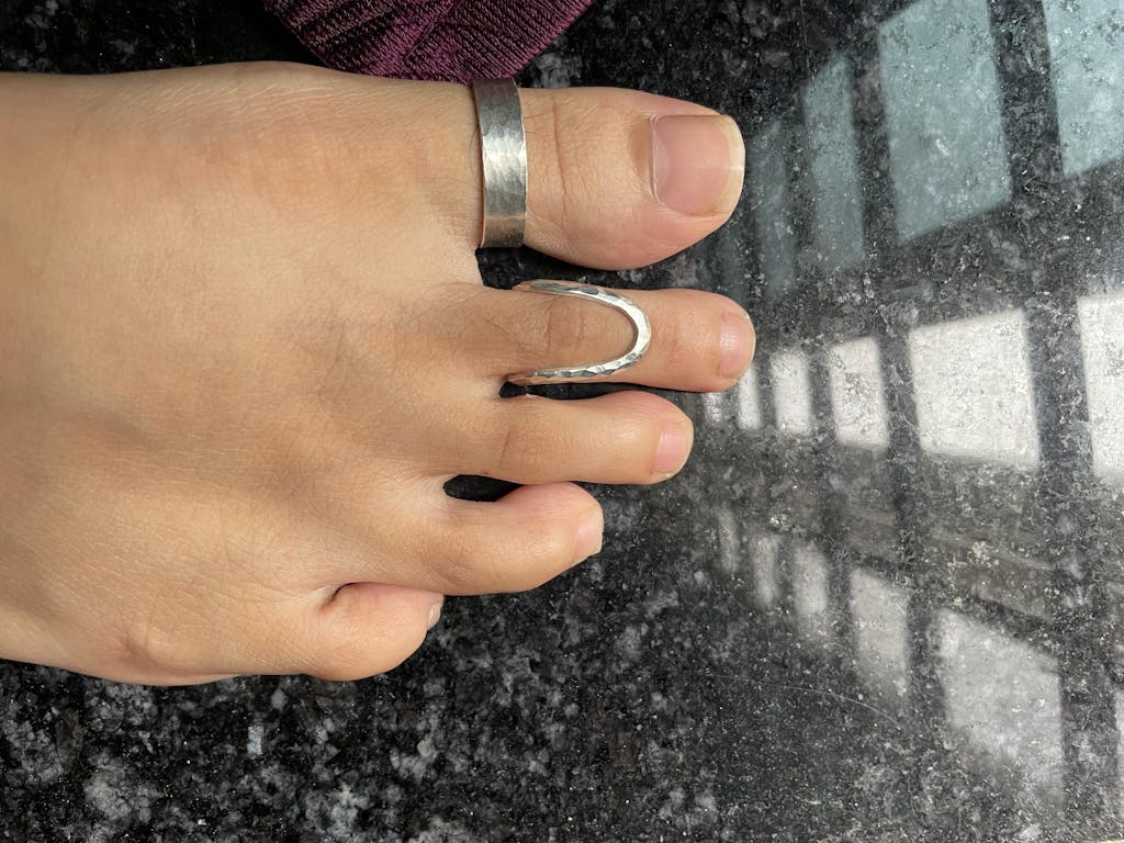 This is a simple hand crafted, hammered silver toe ring for the big toe. Get ready to make up excuses to steal glances at your feet!