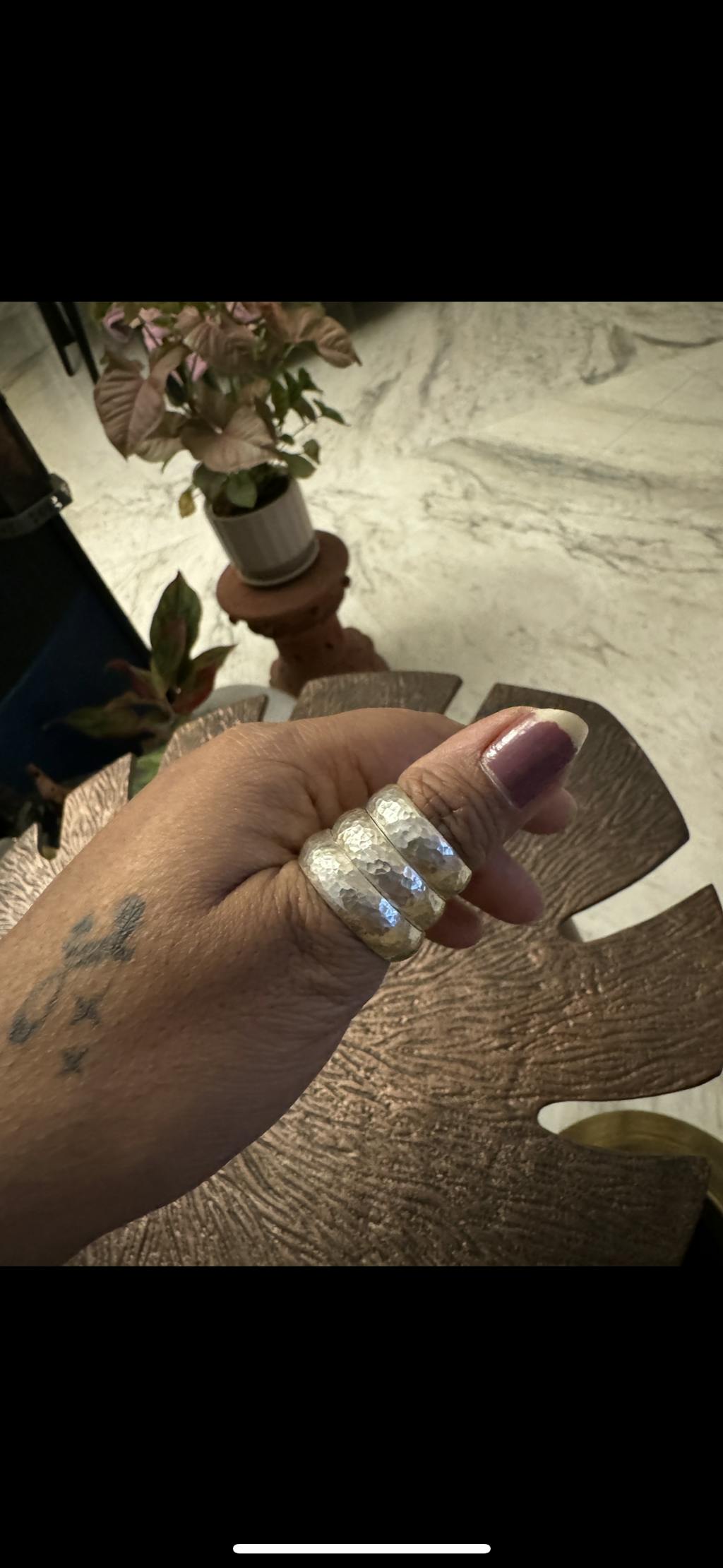 Beauty in the basics! In a world of complexity, this hammered ring is a reminder that sometimes, all we need is simplicity.